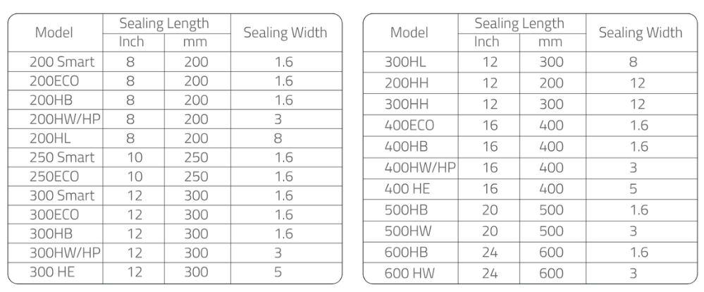 Perfect for sealing heat-sealable poly pouches. Hand-operated impulse (instant) sealing for speed and ease. Hot bar sealers designed for laminated pouches. Adjustable electronic timer for precision control. Audio-visual sealing indicators for assured accuracy. Suitable for solids, granules, and powders. Round element option for simultaneous sealing and cutting.