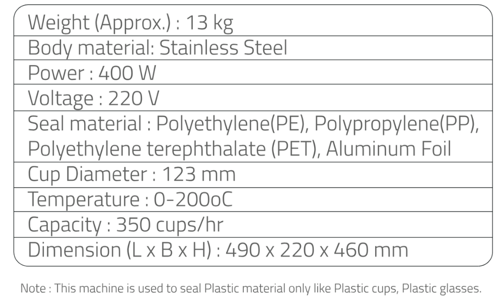 With a high-performance sealing rate of 350 to 500 cups per hour, this compact powerhouse delivers airtight perfection with every seal – keeping your products safe, your service fast, and your customers satisfied.